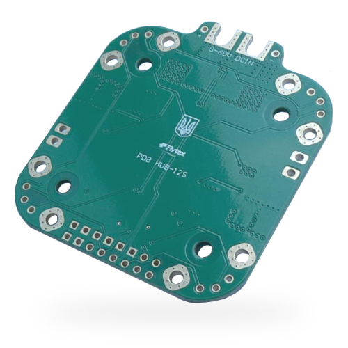 Flytex FCHUB12S is a powerful power distribution board designed for heavyweight and high-thrust drones. It is designed to work with batteries up to 12S LiPo and provides stable power to all onboard systems even under extreme loads.